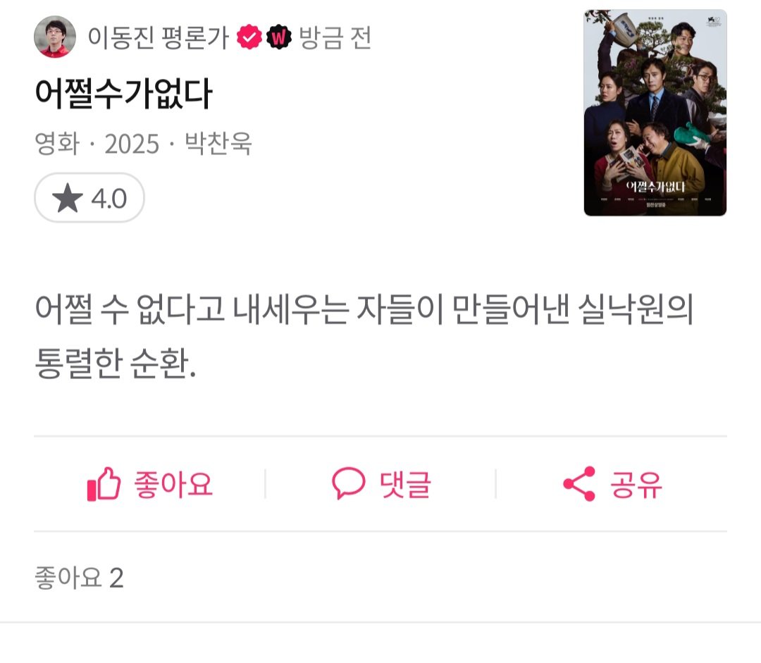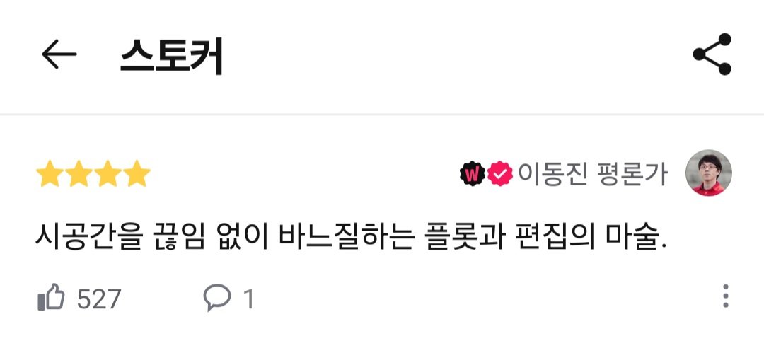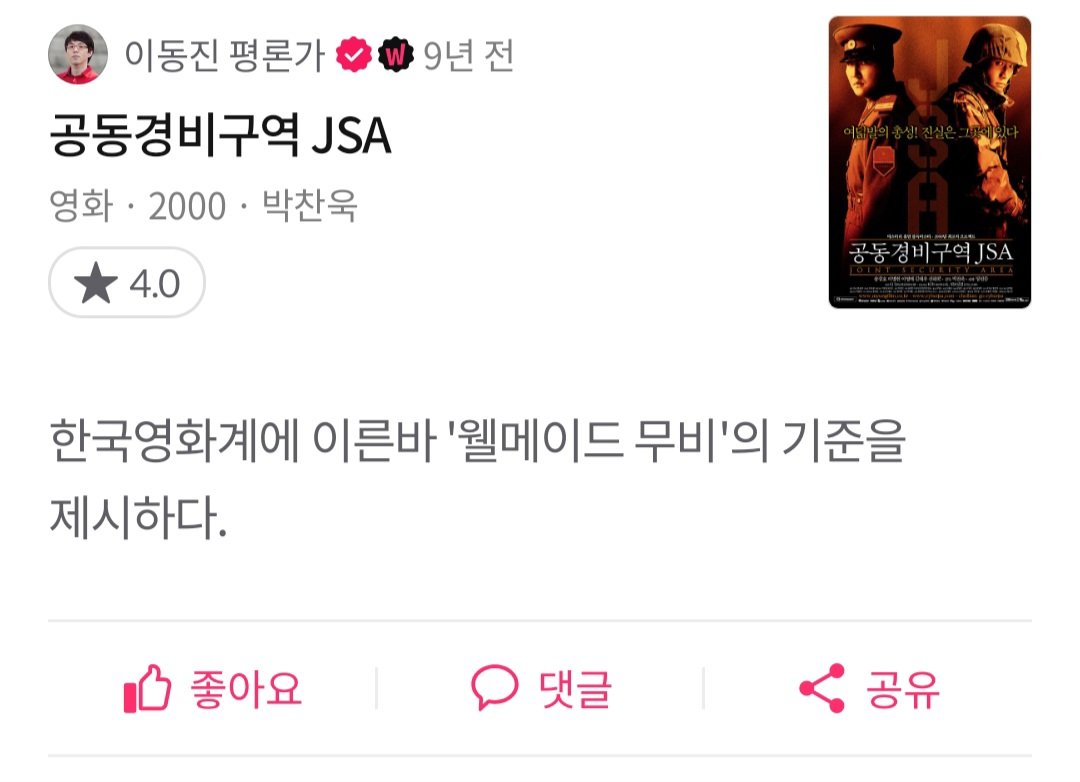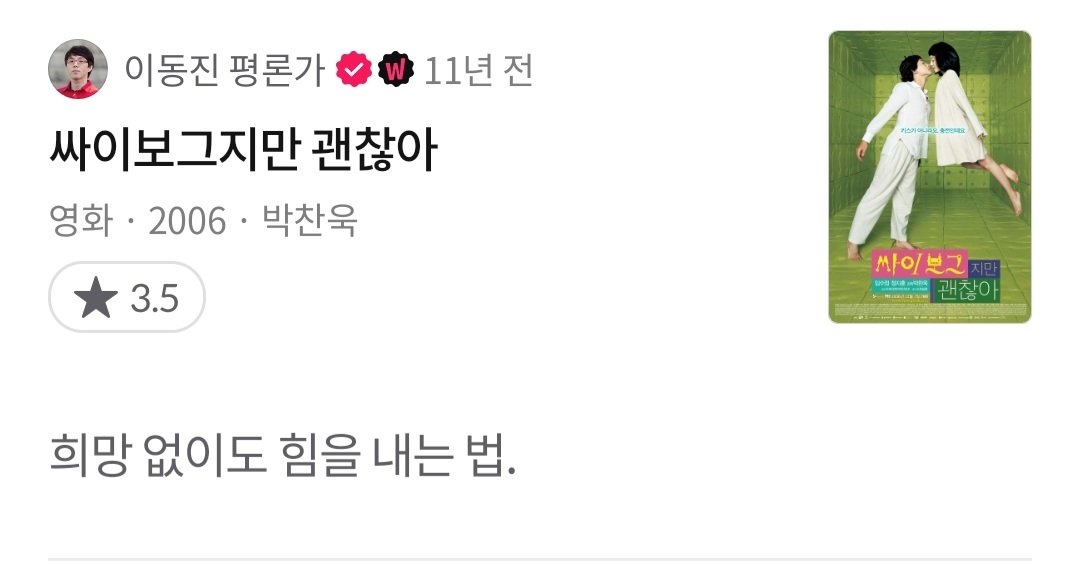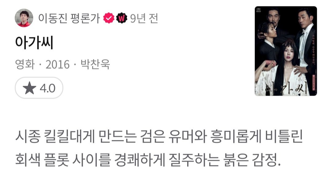 이동진 평론가의 박찬욱 감독 영화들 별점 및 한줄평