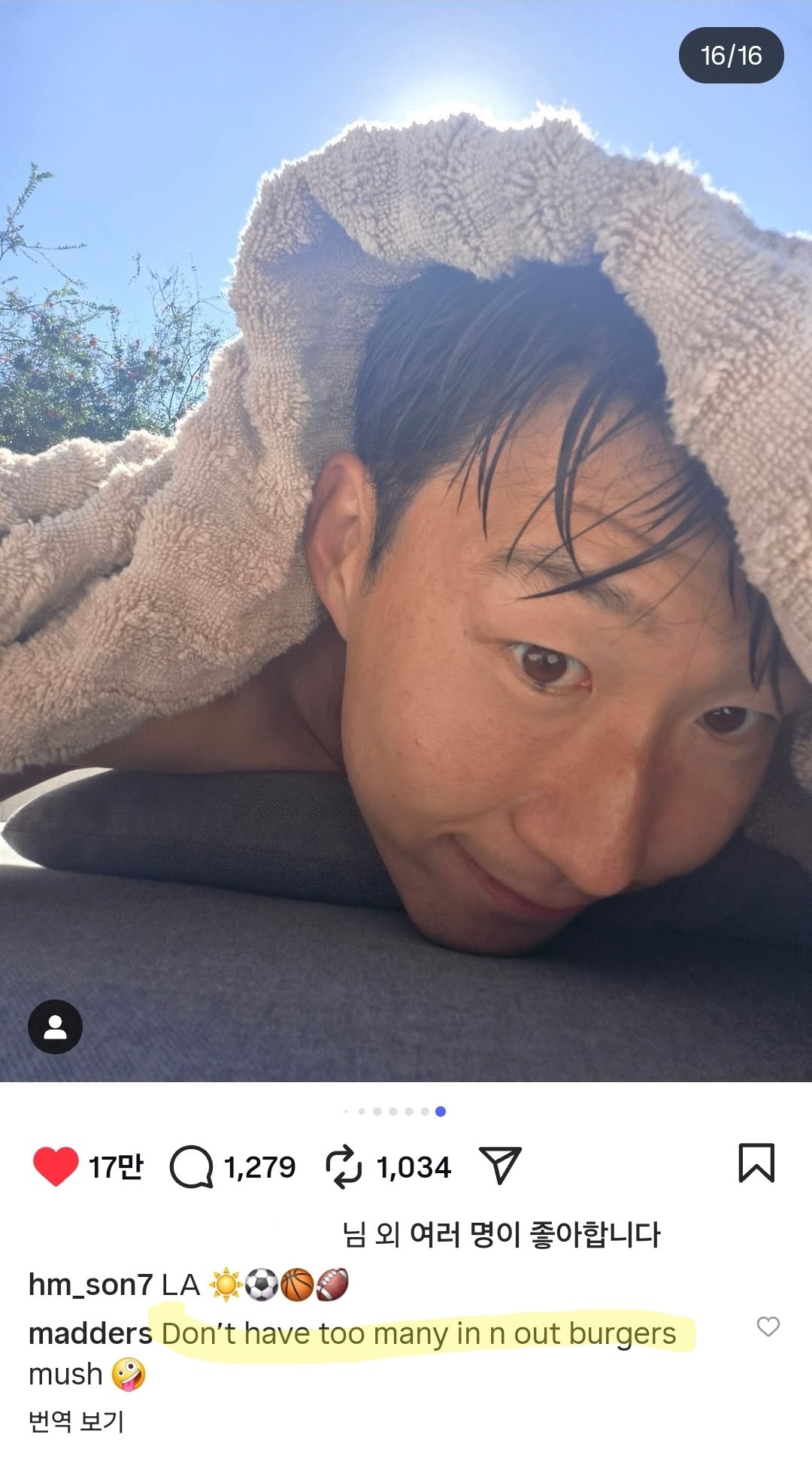 말년휴양 제대로 즐기고있는 손흥민 인스타 근황