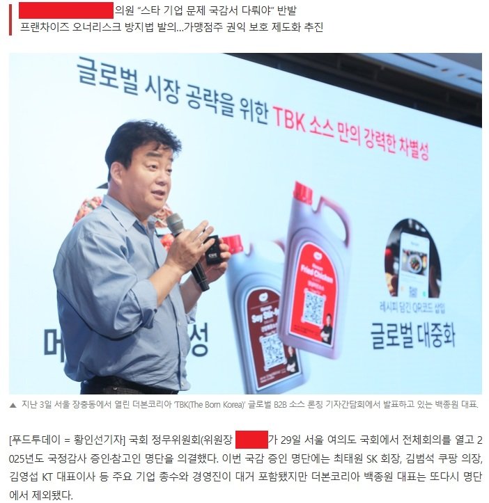 [2025 국감] 백종원, 또다시 국감 증인 채택 불발…민생 국감에 빠진 이유는?