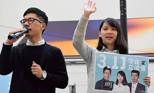 2014년 홍콩 시위 당시 모습. 왼쪽이 아그네스 차우 (오른쪽은 조슈아 웡)