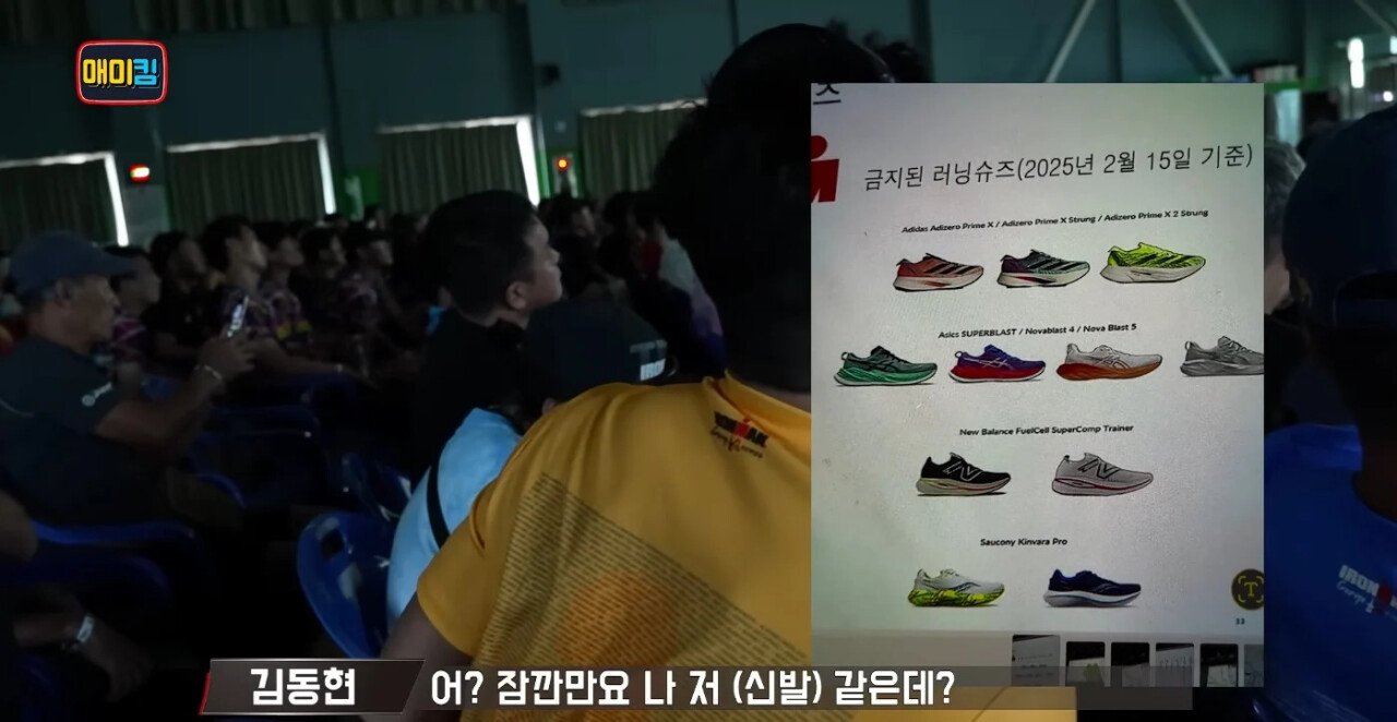 평상시 훈련때 신던 런닝화가 금지 대상인거 경기 당일 알게되어(카본 2장이거나 깔창 높이 4cm이상 금지)