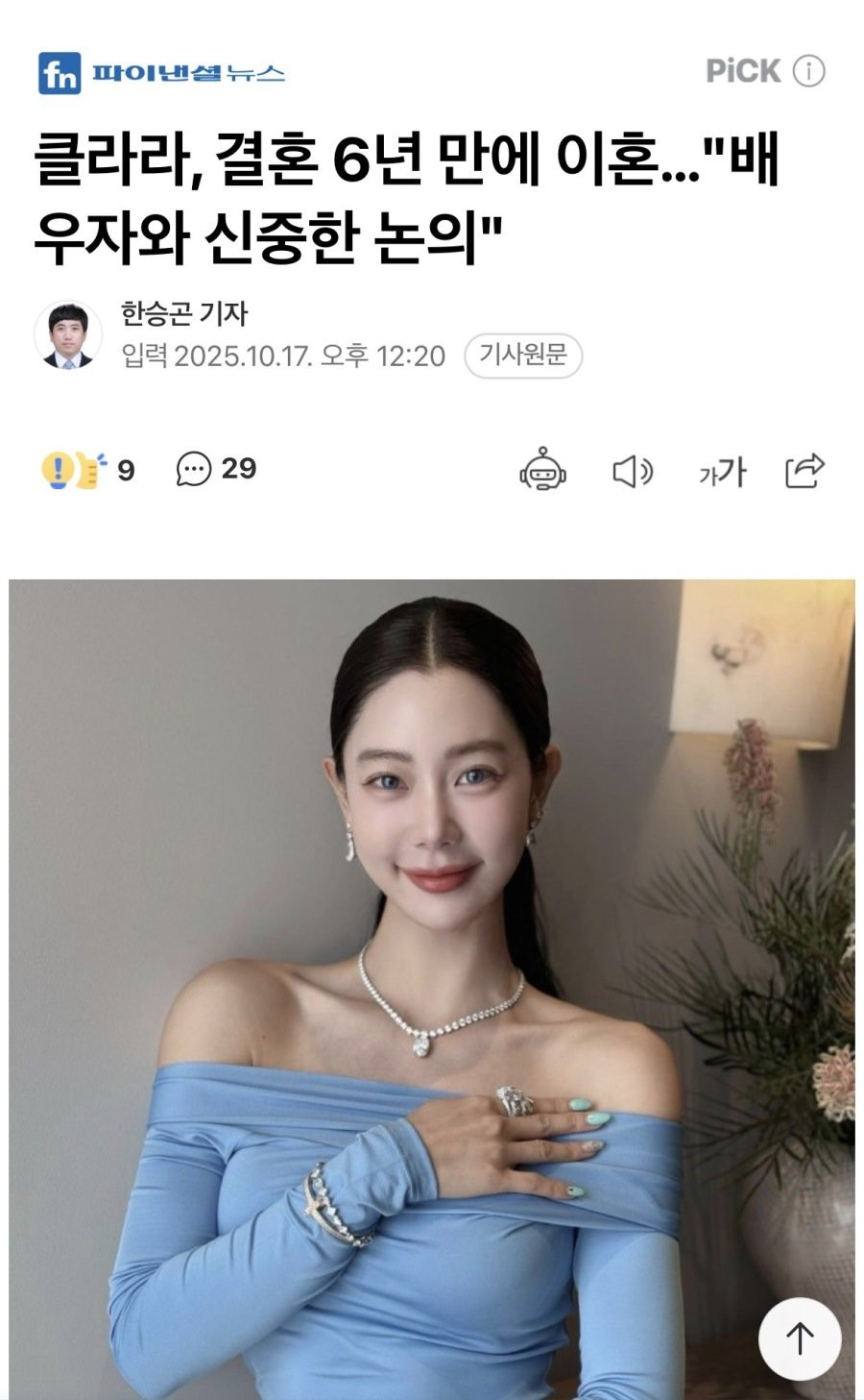 속보) 클라라, 결혼 6년 만에 전격 이혼