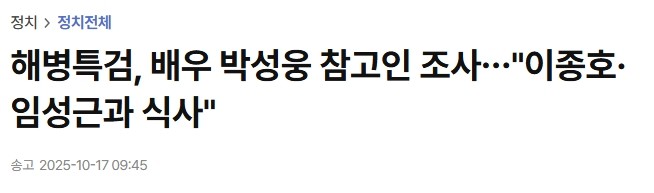 박성웅이 임성근 사단장과 이종호 대표하고 그 시기에 저녁 식사도 하고 아는 사이라 무슨 얘기를 했는지 조사하기 위해 참고인으로 불러 조사