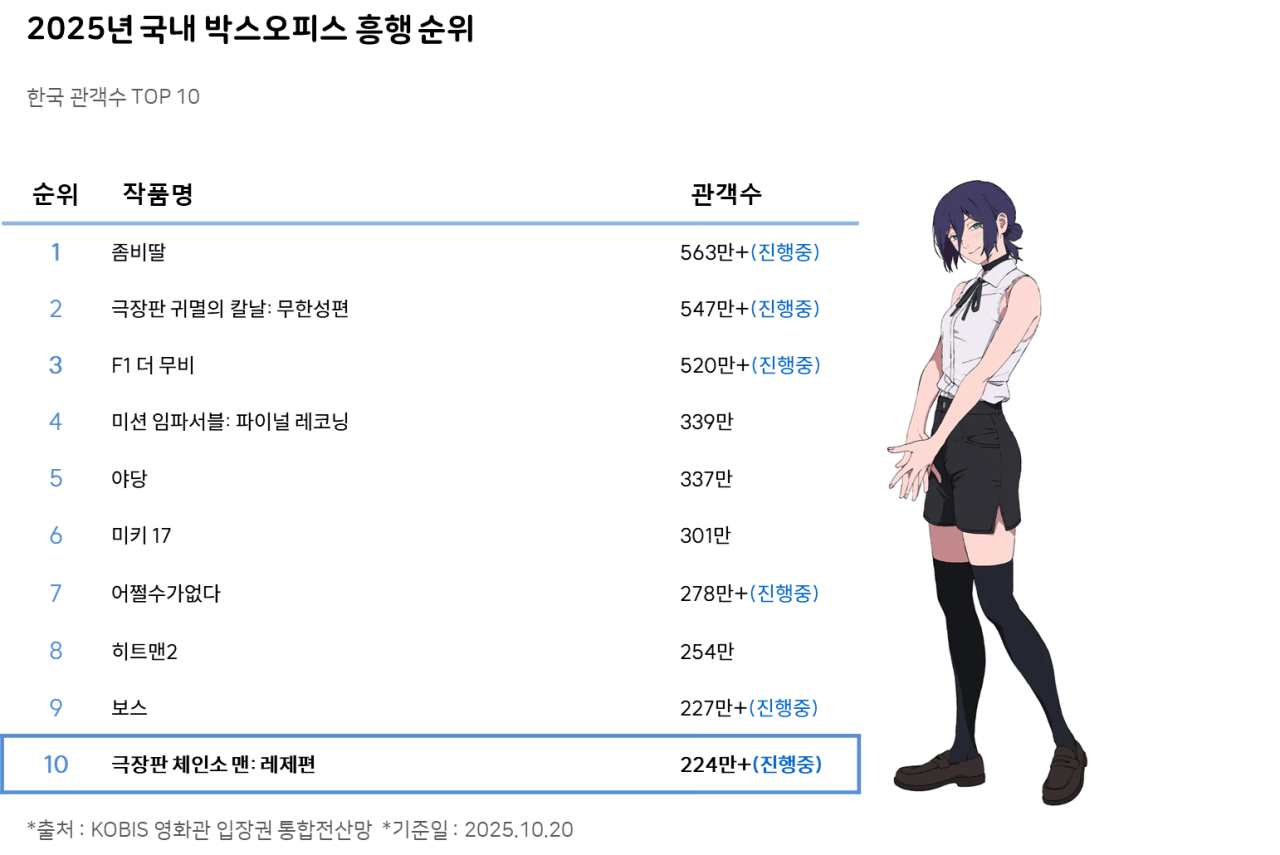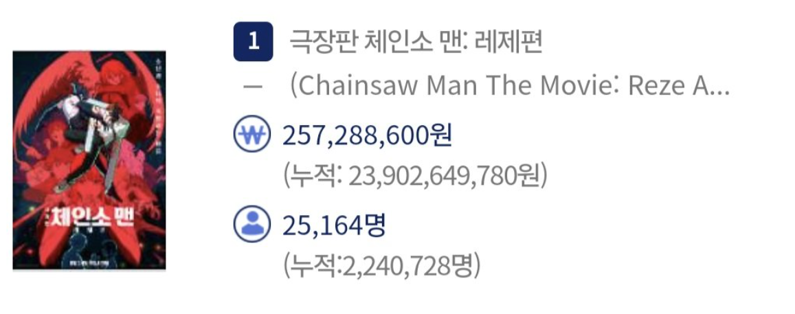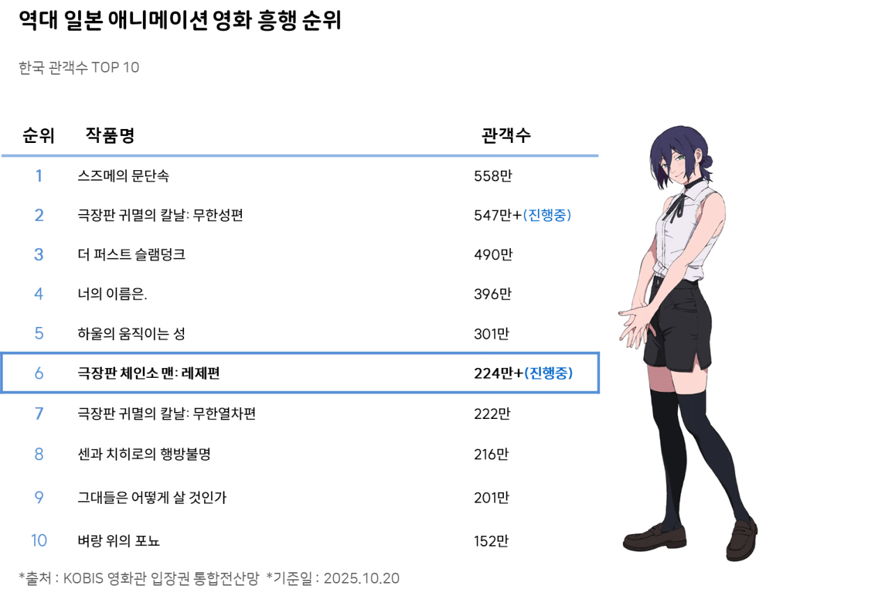 <체인소 맨: 레제편> 역대 일본 애니메이션 흥행 6위 달성