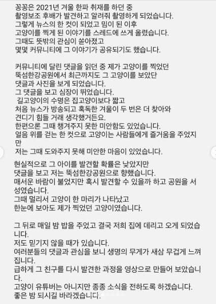 꽁꽁 얼어붙은 한강 위 고양이 근황