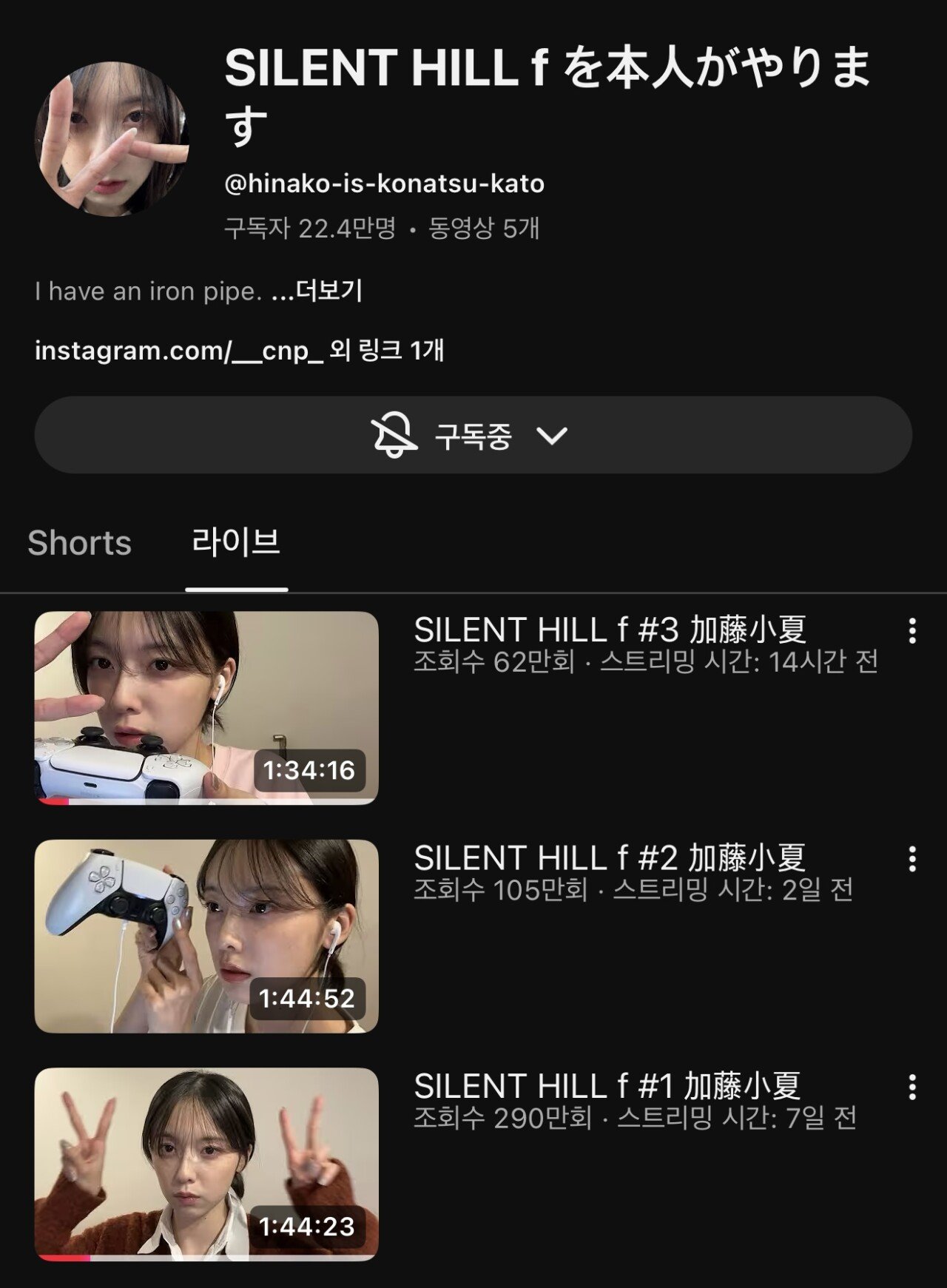 사힐f) 히나코를 연기한 여배우 본인 실황 플레이