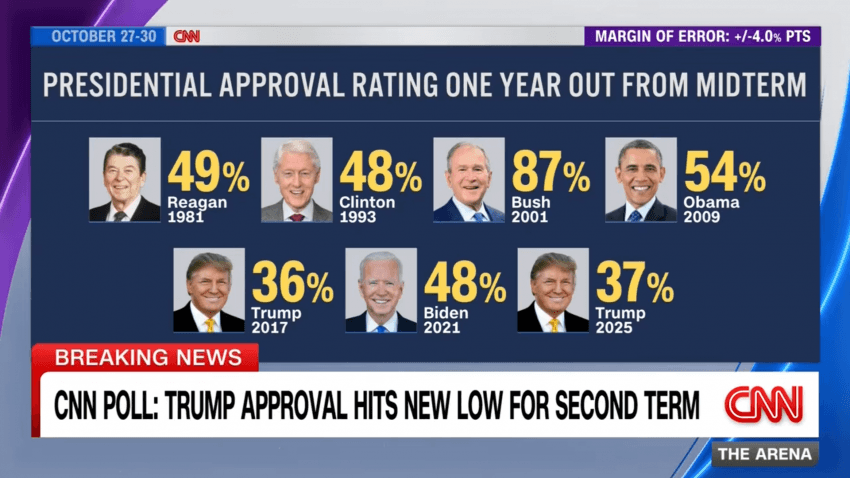 2기 트럼프 지지율 하락세가 가팔라져서 동기간대 이보다 지지율 낮은 정부는 최근 기준 1기 트럼프밖에 없을정도