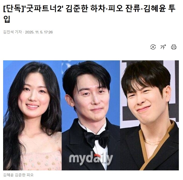 장나라 <굿파트너2> 캐스팅 라인업 뜸