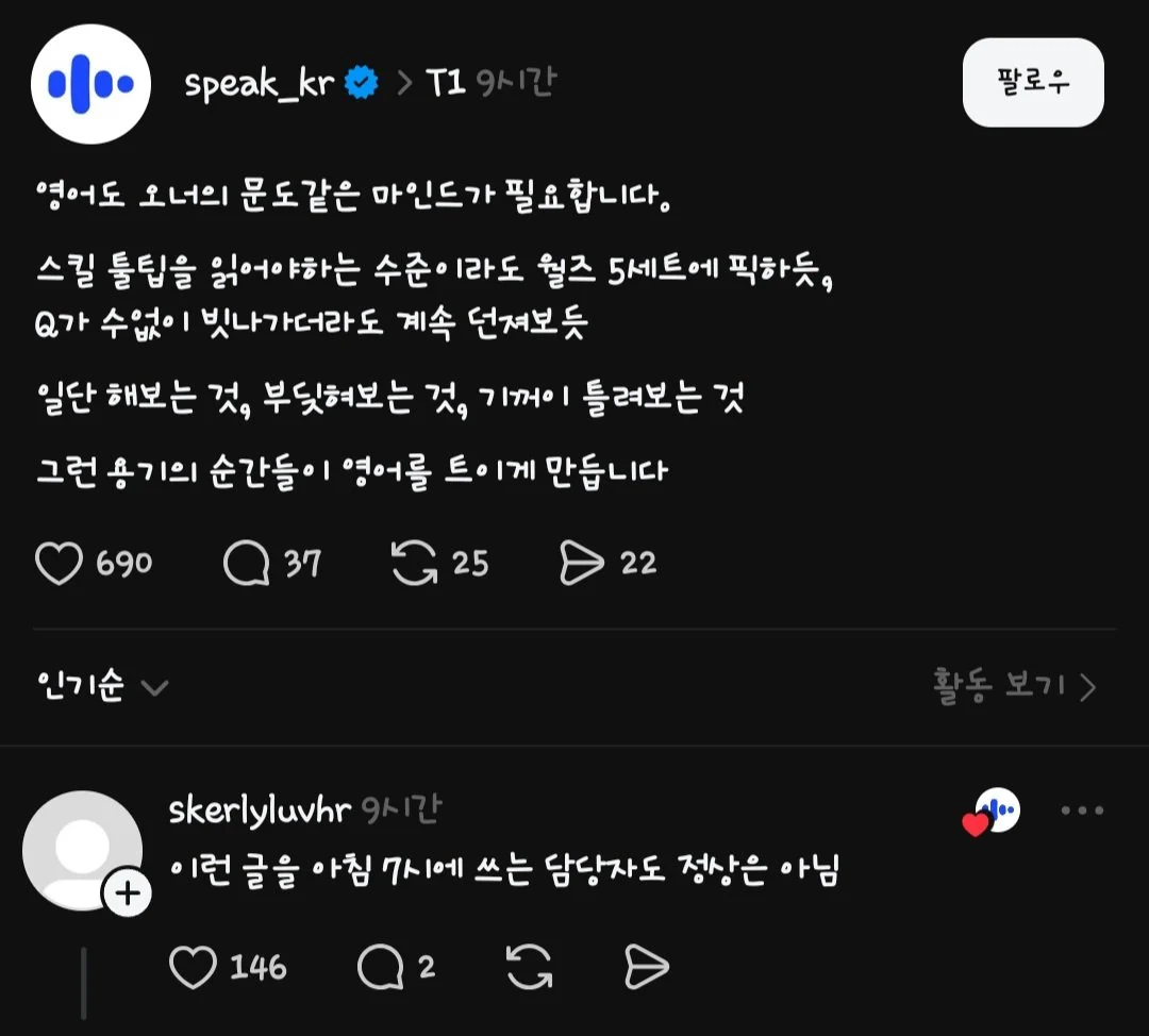 T1 스폰서 스픽 스레드 ㅋㅋㅋ