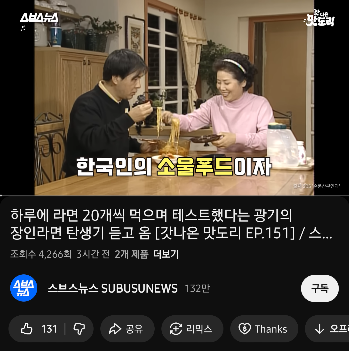 스브스 맛도리 최신 영상에 수상한 댓글들