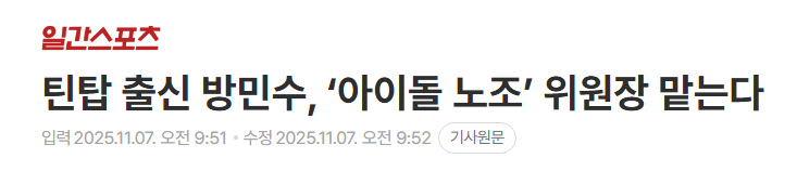 틴탑 출신 방민수, ‘아이돌 노조’ 위원장 맡는다