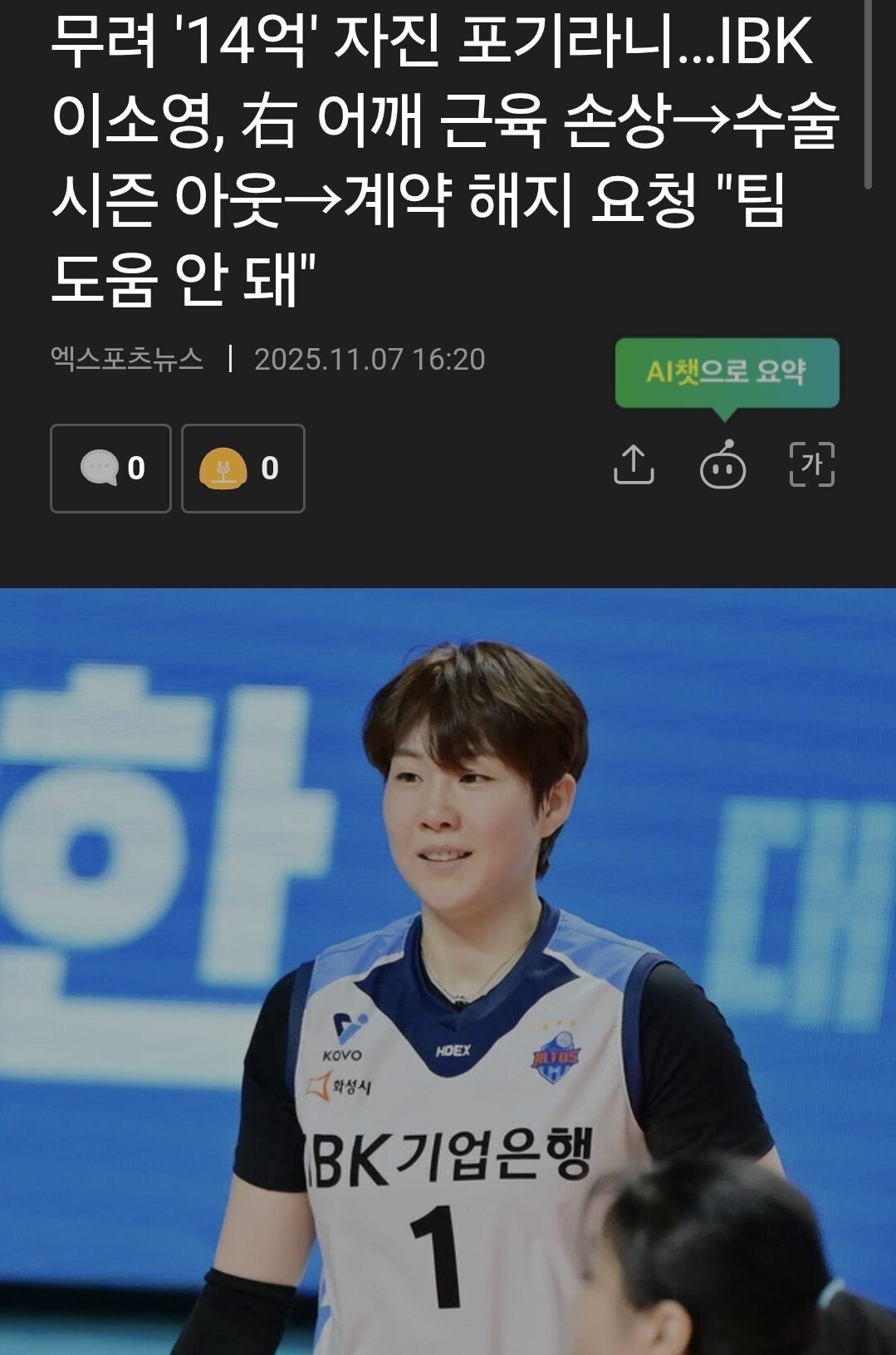여자배구 이소영 14억 자진포기 ㄷㄷ