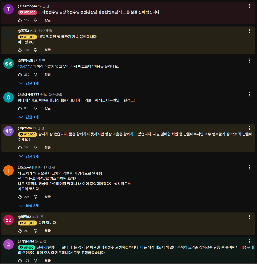 영상 업로드 3시간만에 폭주하는 UFC 고석현 댓글