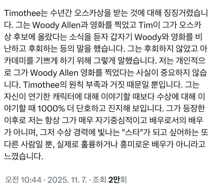 현재 미국에서 비판받고 있는 티모시 샬라메 인터뷰