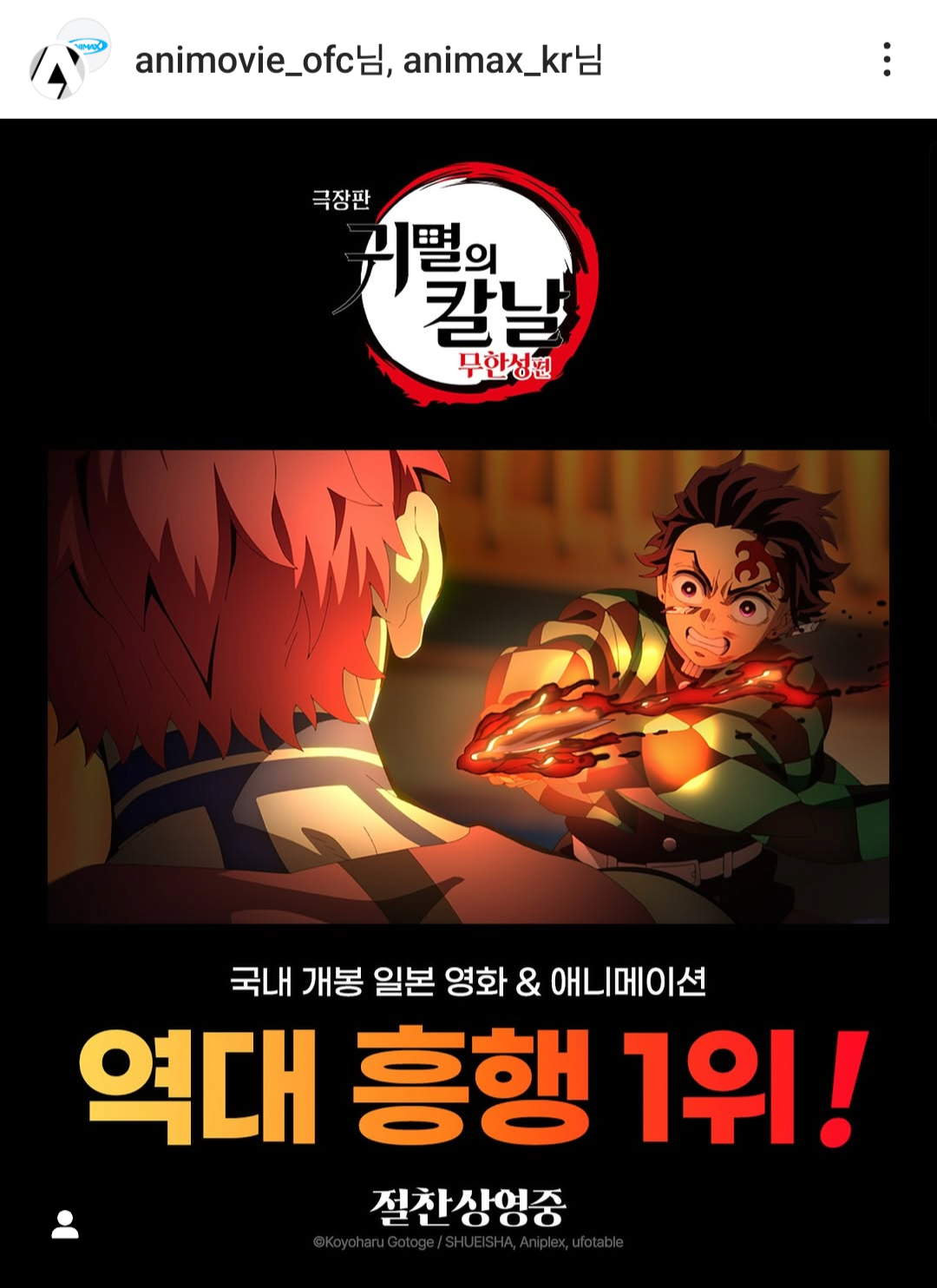 귀칼 극장판 국내 개봉 일본 영화 & 애니 역대 흥행 1위