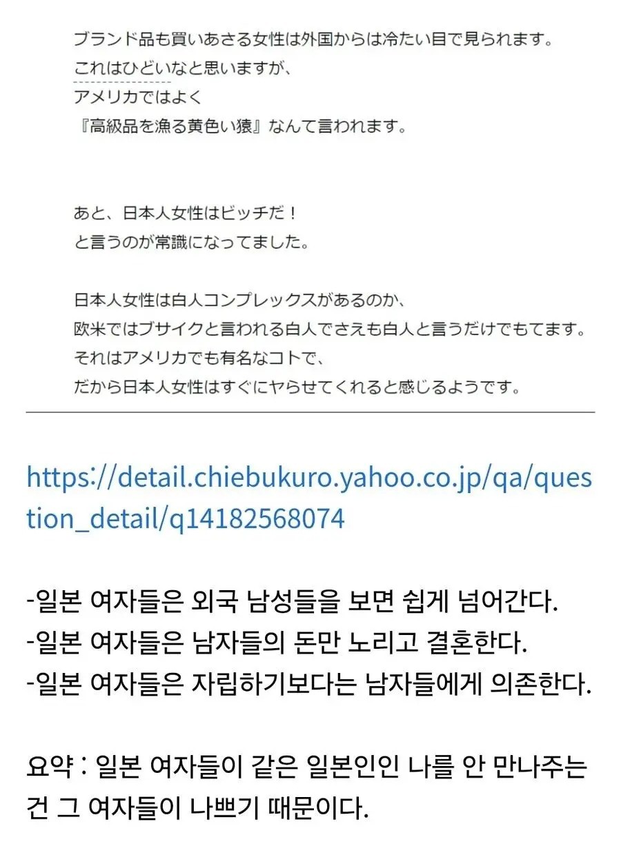 일본 인터넷에서 일본 여자들을 싫어하는 이유