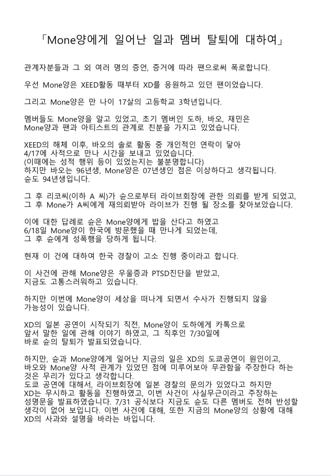 아이돌이 미성년자팬 성폭행해서 피해자 자살했다고 폭로됨