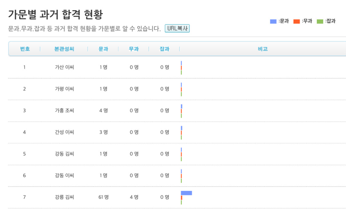 우리 집안에 과거 합격자 얼마나 나왔나 알수 있는 사이트
