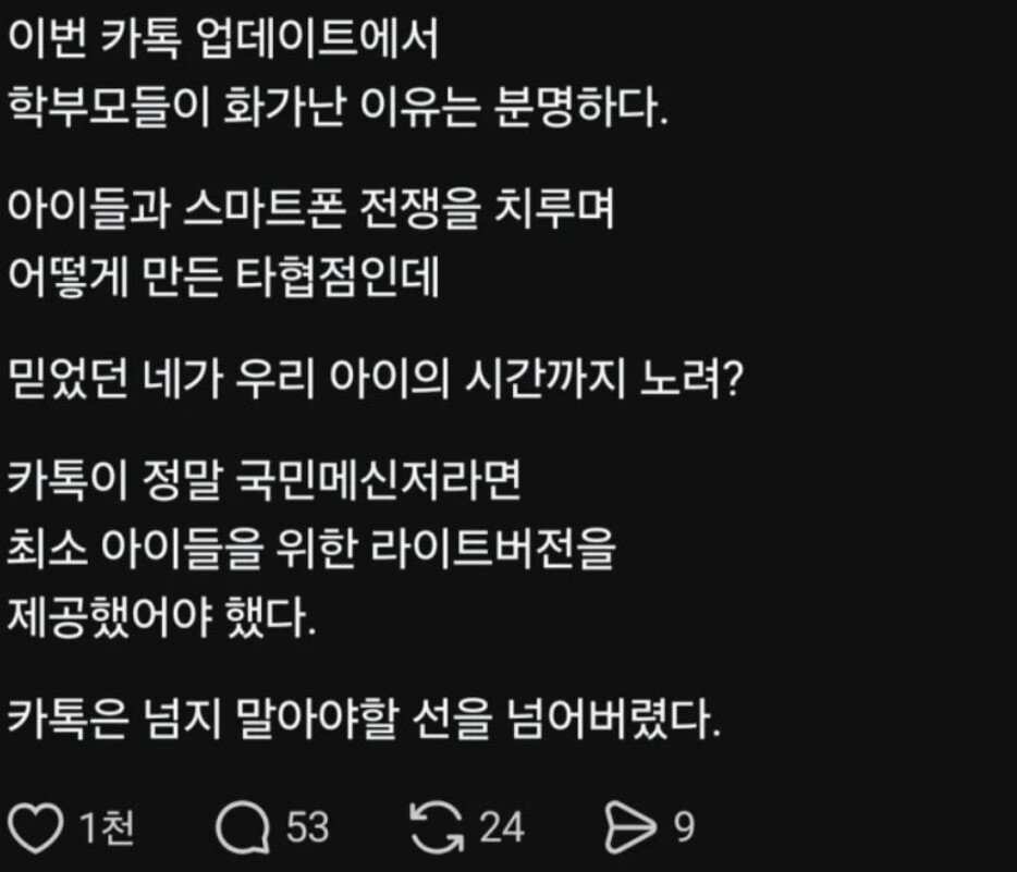 "학부모들도 단체로 열받았다" 미쳐버린 카톡 신규 근황