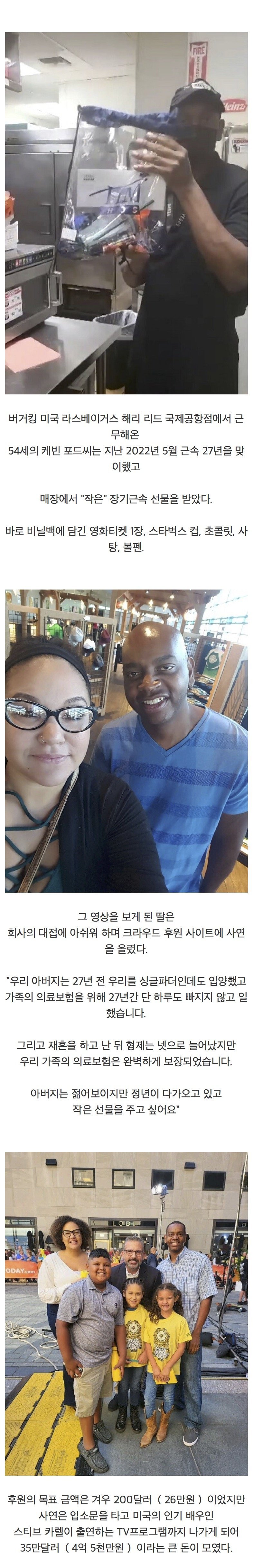 버거킹에서 27년 개근 근무한 직원에게 준 장기근속 선물