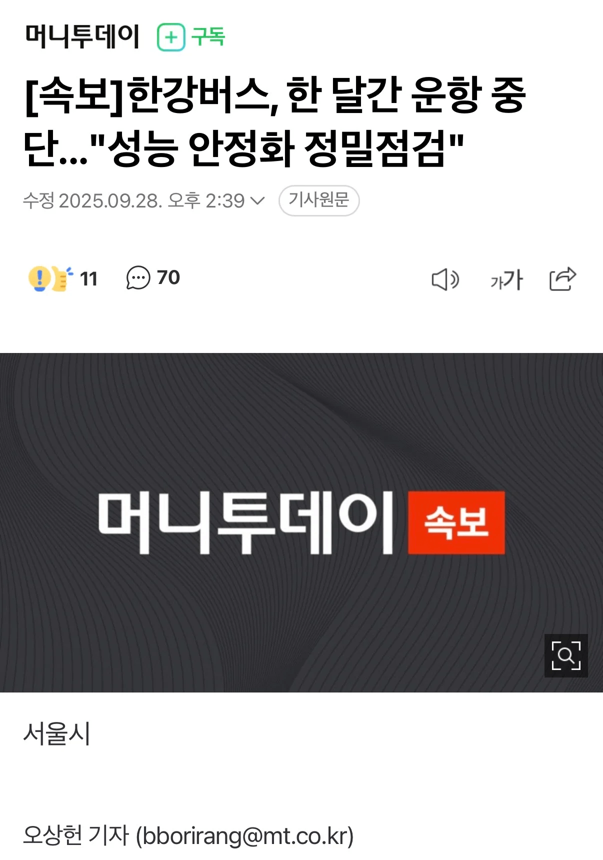 한강버스, 한 달간 운항 중단 "성능 안정화 정밀점검"