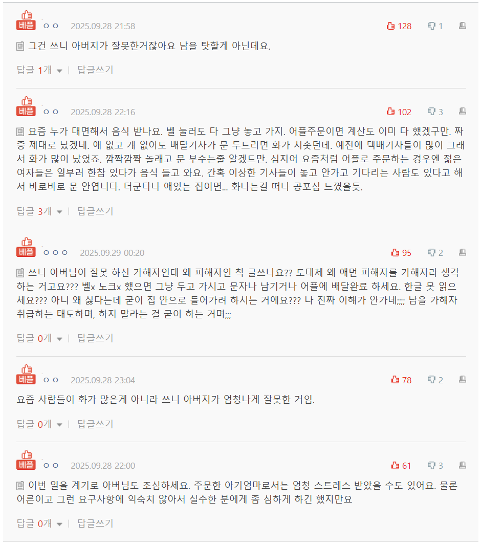 [네이트판] 배달기사가 문 두드리는게 그렇게 싫나요?