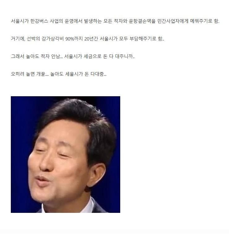 오세이돈 한강 버스 사업자는 쉬어도 개꿀