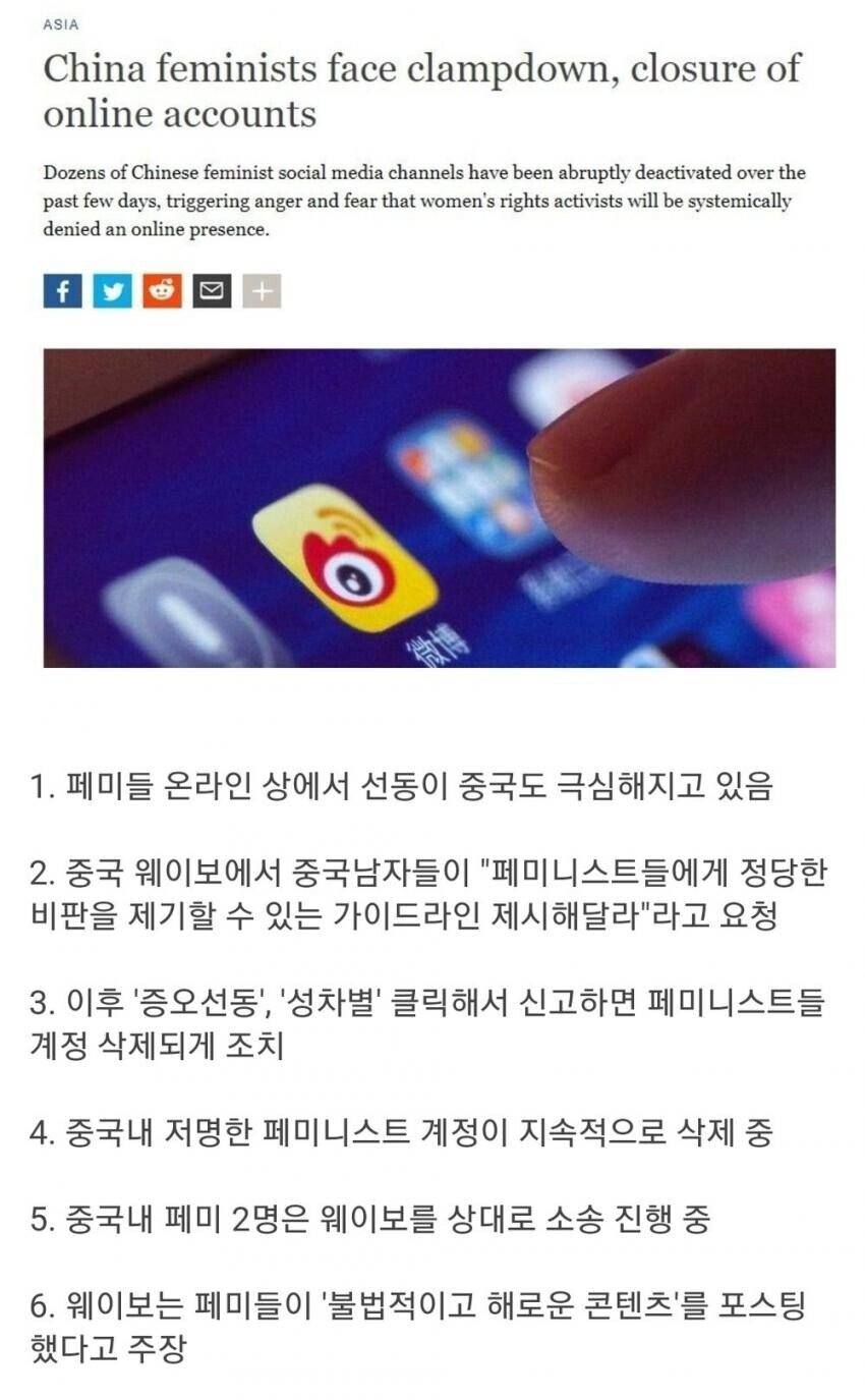 중국에서 페미가 잠잠한 이유