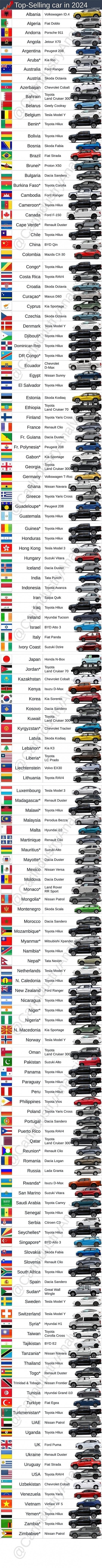 2024년 국가별 가장 많이 팔린 자동차 라인업