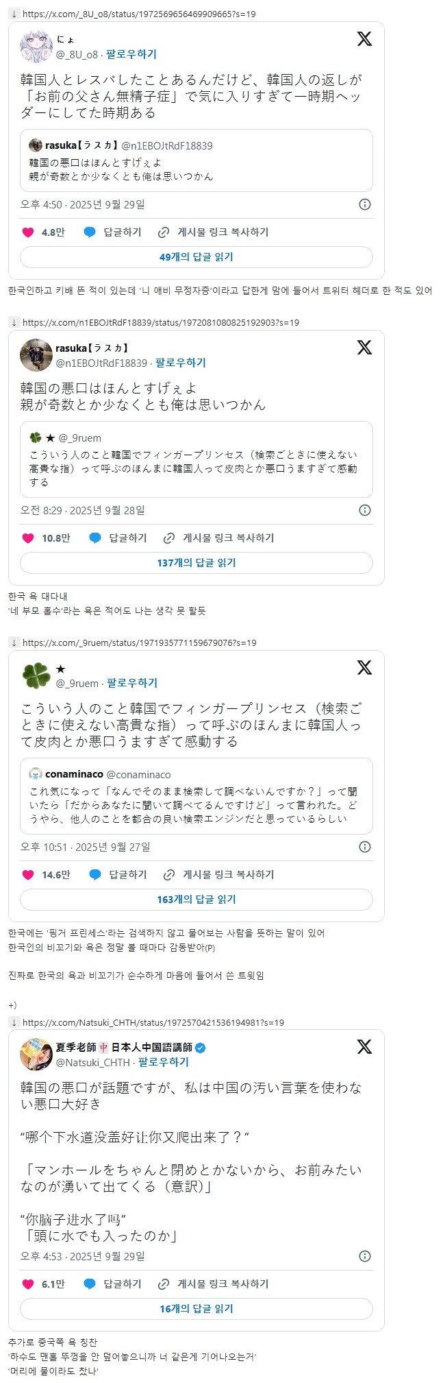 한국인과 중국인의 욕과 비꼬기가 마음에 드는 일본인들