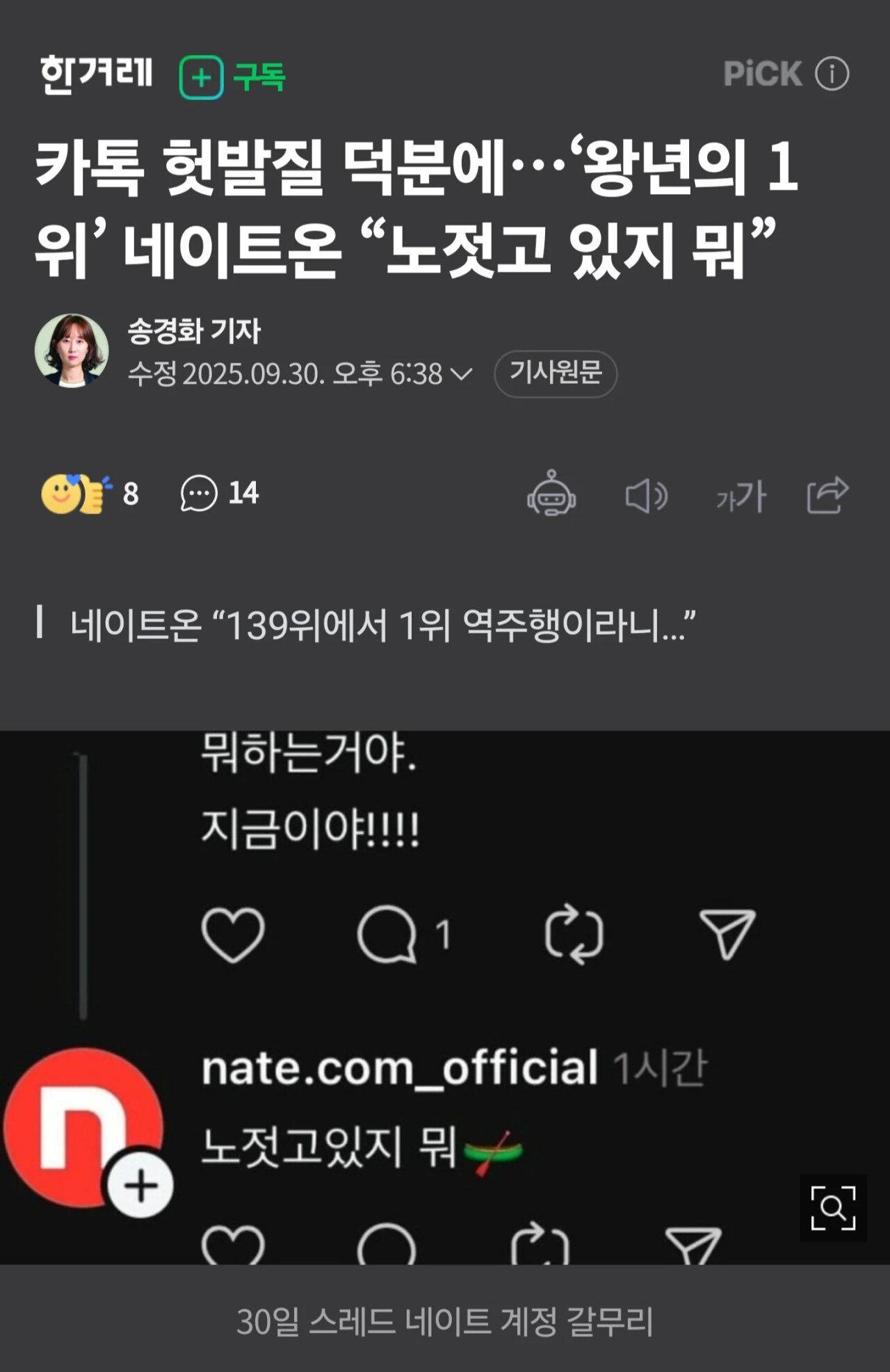 카카오톡 사태 이후 소개문구 변경한 네이트온 근황