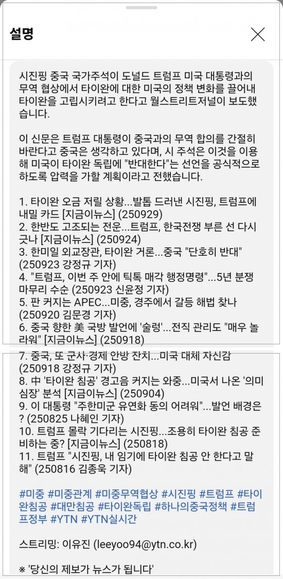시진핑 "트럼프랑 관세협상 해줄테니 미국은 타이완 포기해"