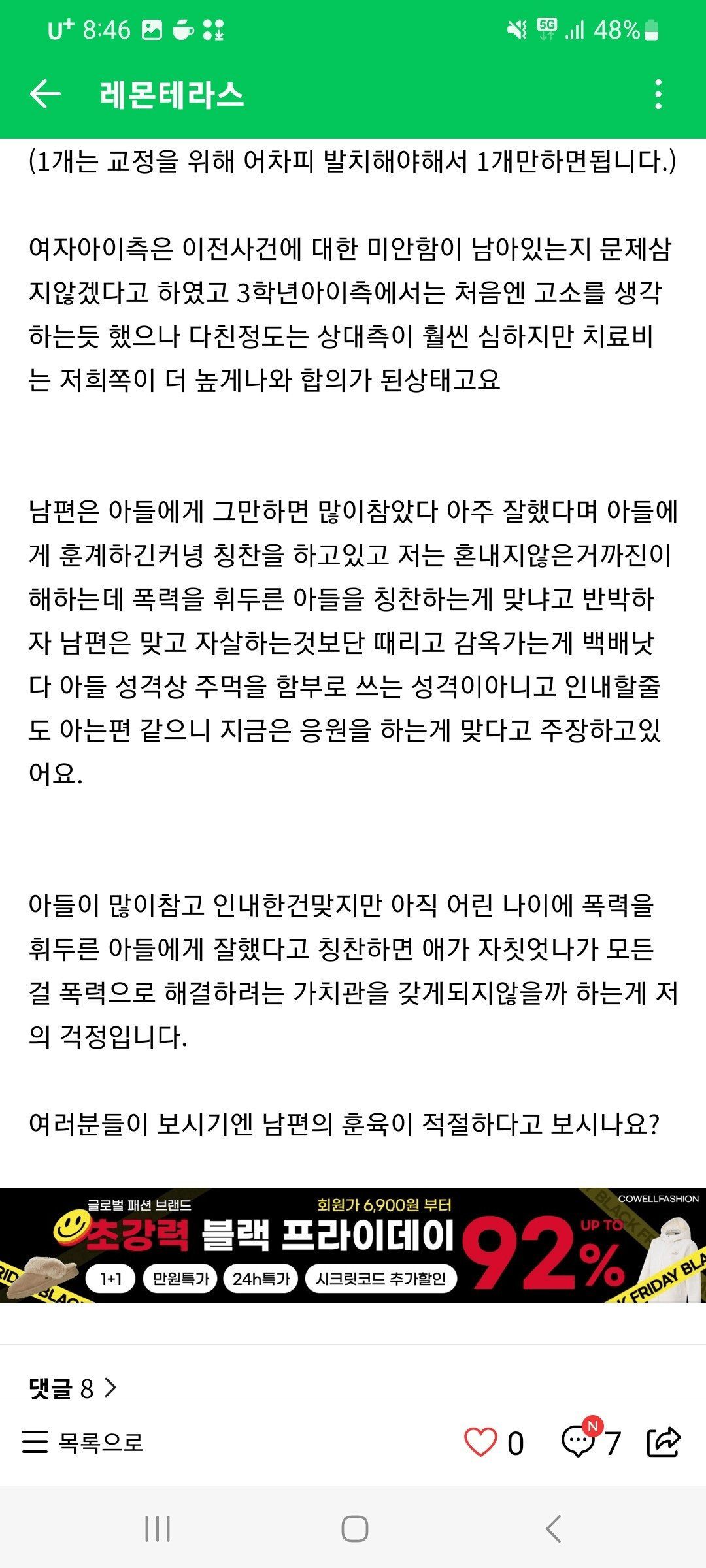 학교선배 줘패버린 중2 아들에게 잘했다는 아빠
