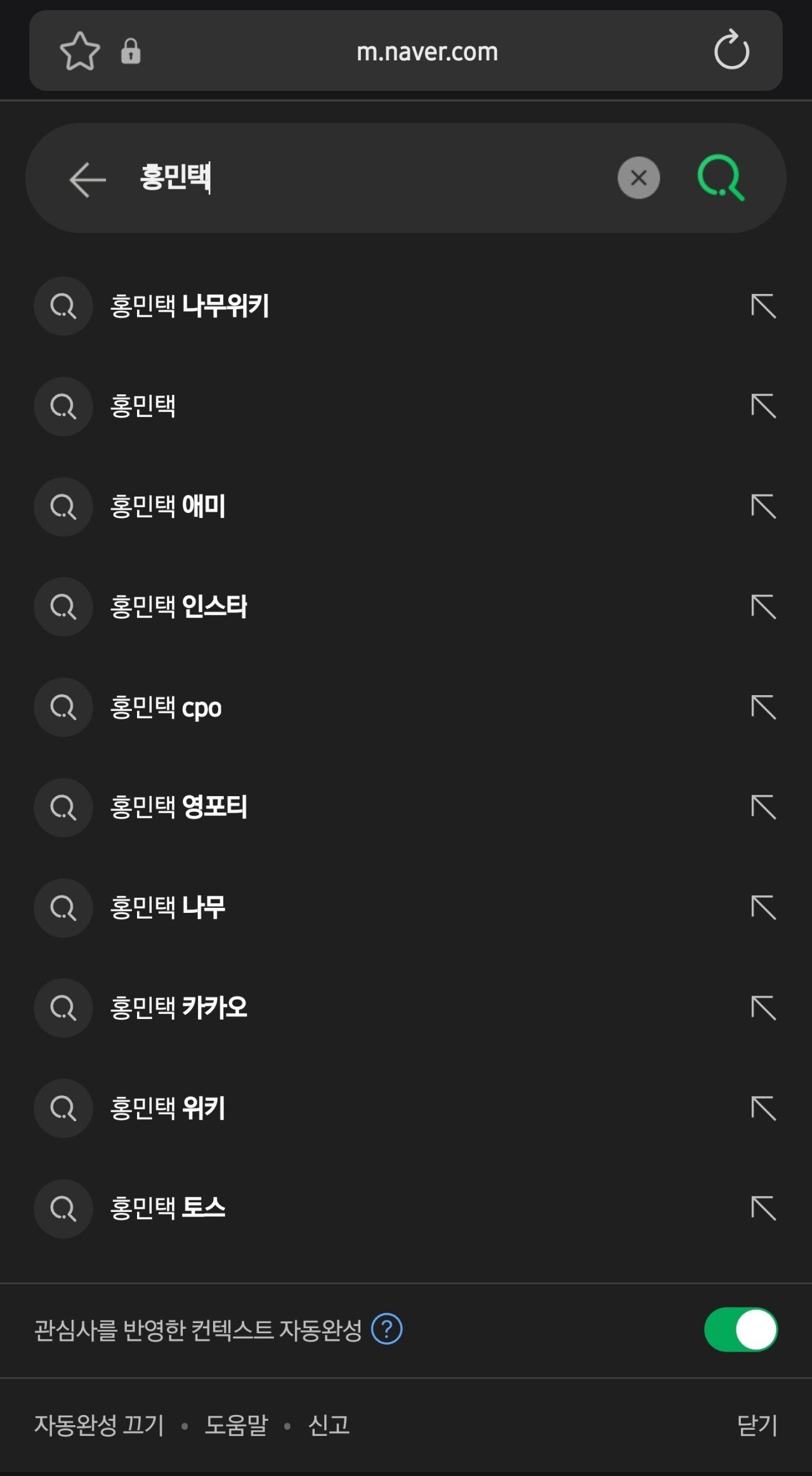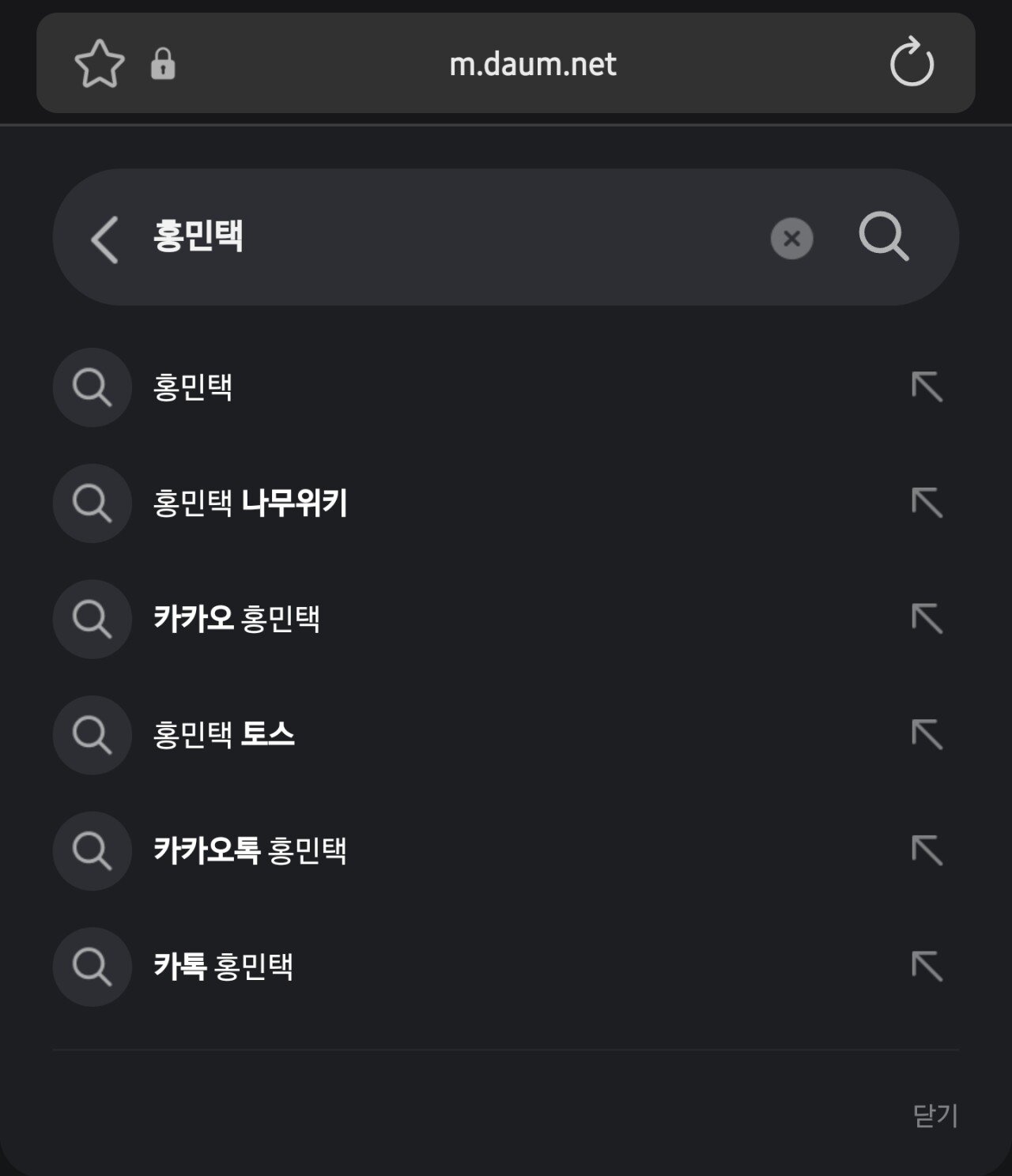 카카오톡 홍민택 다음 vs 네이버 연관검색어 온도 차이