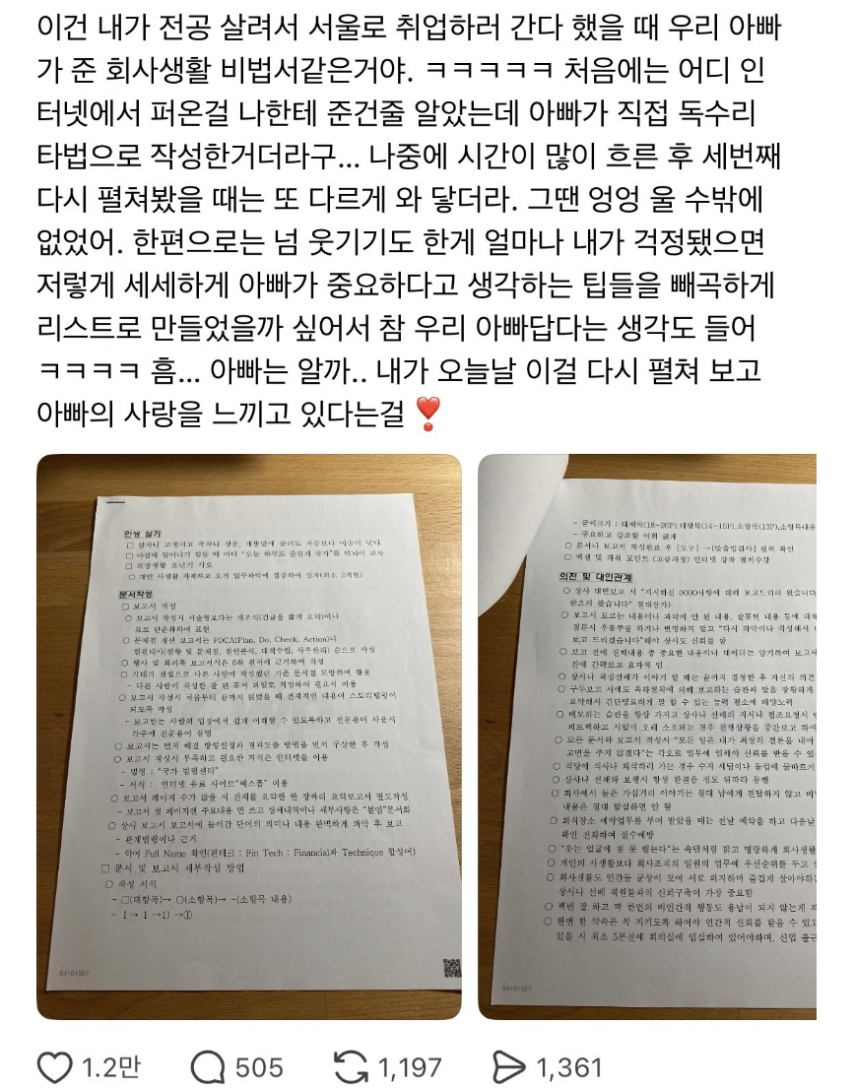 취업한 딸을 위해 사회생활 비법을 전수한 아버지