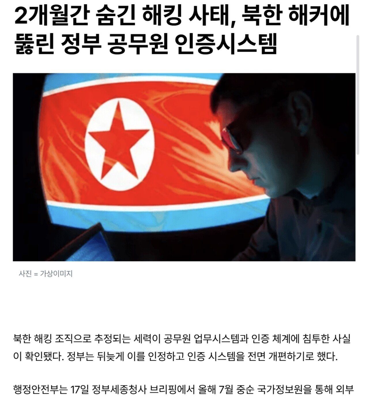 북한해커, 정부 온나라시스템 해킹...2달동안 숨겨