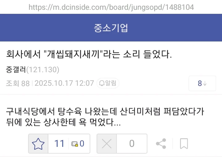 회사에서 "개ㅆ돼지ㅅㄲ" 소리 들은 돼정공 출신