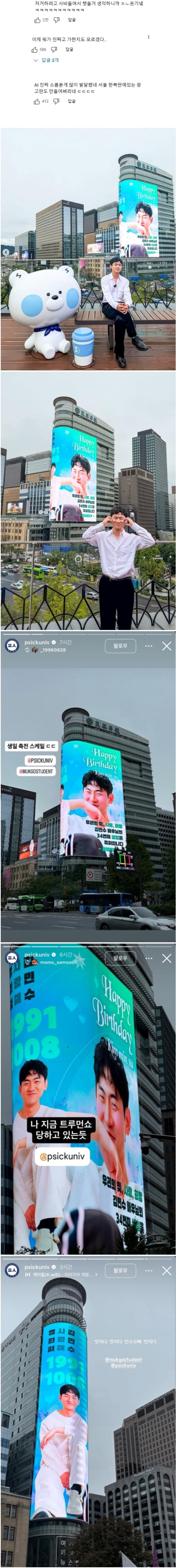 ai인지 진짜인지 논란인 피식대학 배우 김민수 생일 축전 ㄷㄷㄷ
