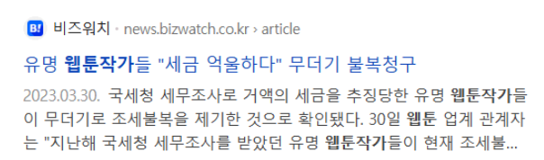 웹툰작가들이 추징당한 세금에 대해 불복 청구를 시작했다는 기사가 뜸. (야옹이 작가 포함)