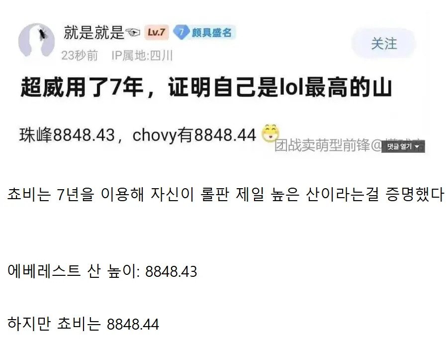 롤) 7년만에 자신이 가장 높은 산이란걸 증명한 쵸비