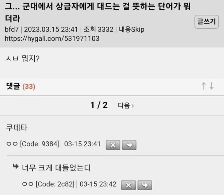 군대에서 상급자에게 대드는 걸 뭐라고 하지?