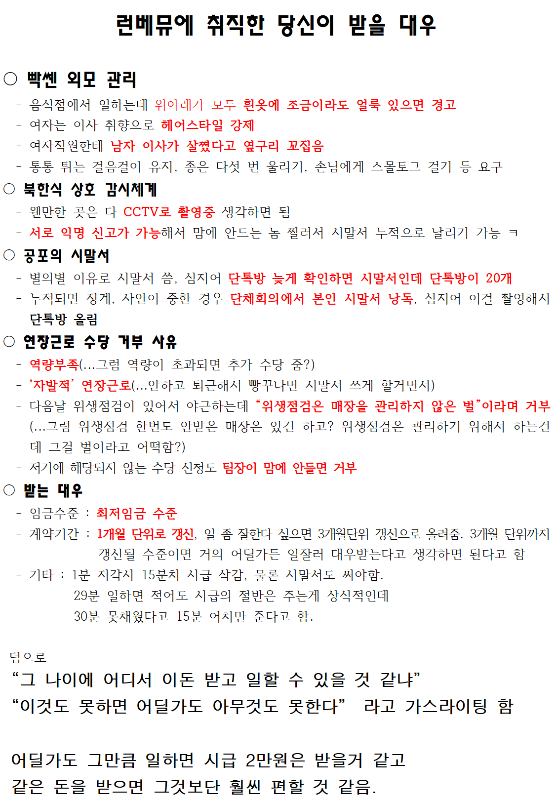 내부자들이 폭로한 런베뮤의 극한 노동환경