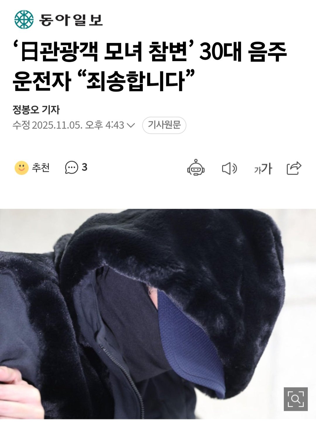 日관광객 모녀 참변’ 30대 음주운전자 “죄송합니다”