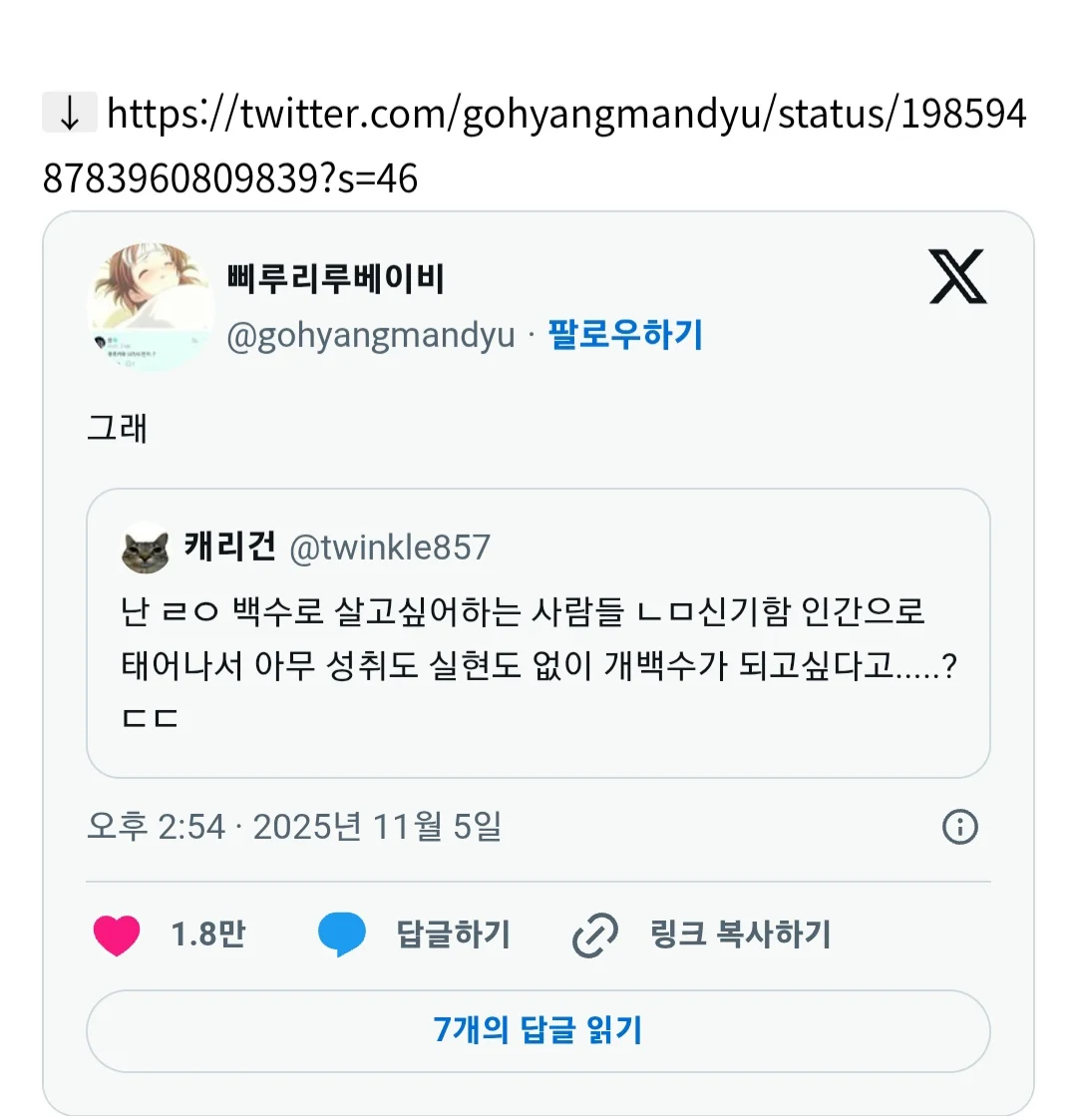 난 백수로 살고싶어하는 사람들 너무 신기함