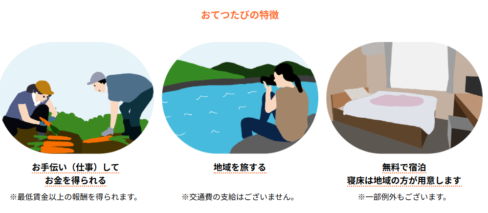 오테츠다이(お手伝い, 일손 돕기) + 여행(旅, 타비)가 합쳐진 신어로