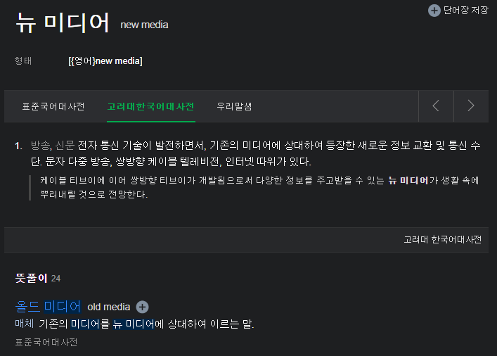 SNS나 유튜브 등 인터넷 시대가 되어 등장한 뉴 미디어 (짤 상단 정의)와 대비되는
