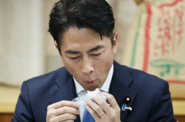 (3년 전 쌀(비축미)로 지은 밥으로 만든 주먹밥을 맛보는 펀쿨섹 당시 농림상, 출처 아사히신문)