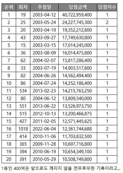 역대 로또 당첨금 순위