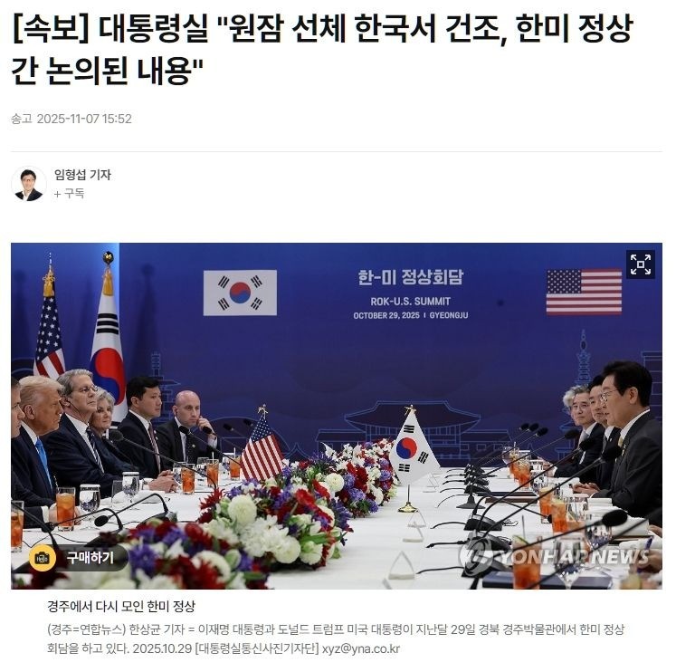대통령실 "원잠 선체 한국서 건조, 한미 정상 간 논의된 내용"