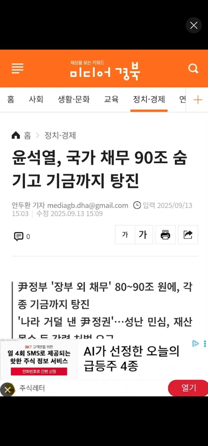 정부 국가채무 90조 숨기고 기금까지 탕진